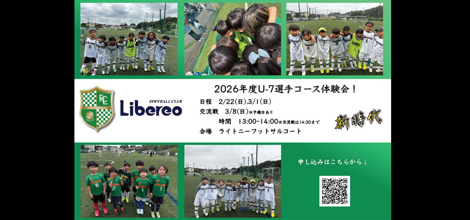 2026年度U-7選手コース体験会!お申し込みはこちら